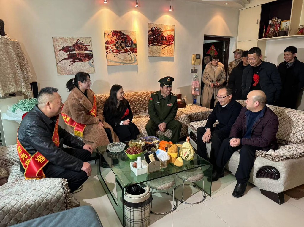 仪式之后,由区人武部、退役军人事务局、辖区街道和社区组成的送喜报队伍敲锣打鼓将“二等功臣之家”的牌匾送到现役军人盛泽林家。盛泽林2022年军校毕业分配到海军某部,到部队才一年时间,就在2023年海军组织的比武中夺得1个第一、1个第二的好成绩,荣立“战备训练二等功”。伴随着喜庆的锣鼓声,在亲朋好友和邻居们的见证下,盛泽林全家喜气洋洋地接过牌匾,脸上的喜悦溢于言表。其父盛建钧表示:“收到牌匾和喜报,心情特别激动,充分感受到党和政府的关心厚爱,将一如既往支持孩子在部队安心服役,为国防建设再立新功,为家乡赢得荣誉。”