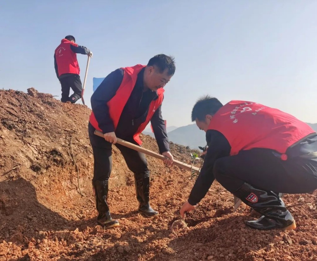 植树现场,在局党组书记、局长刘新宇的带领下,党员干部们拿着铁锹、穿上雨靴忙碌起来。大家或两人一组、或三五人一群,挥锹铲土、分苗定植、扶苗填坑、提水浇灌,干劲十足。在大家的共同努力下,90株新栽种的油茶苗昂首挺立,在这里正式“安家落户”,将小山坡装点得生机盎然。新苗绿、志愿红交相辉映,成为了春日里一道靓丽的风景线。