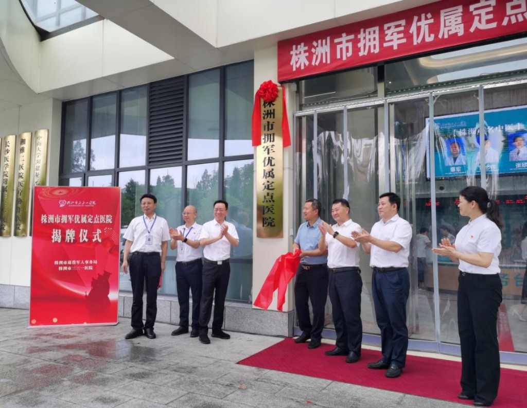 7月2日上午,“株洲市拥军优属定点医院”揭牌仪式在株洲市三三一医院举行,为全市现役军人、退役军人和其他优抚对象献上一份医疗优待“大礼”,100余名重点优抚对象现场见证了揭牌仪式,并参加了医院组织的关爱退役军人大型义诊活动。市人民政府副市长易湘东出席仪式并为医院揭牌。