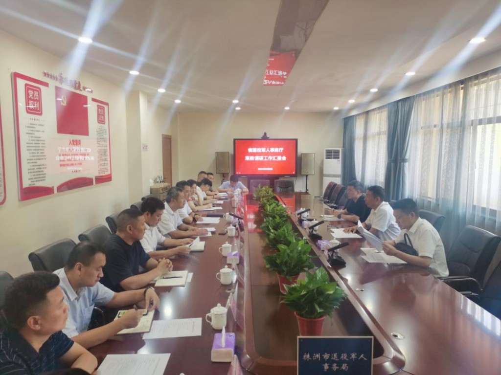 8月8日上午,省退役军人事务厅党组成员、副厅长邵波一行来株洲调研,详细了解退役军人思想政治和权益维护工作、服务保障体系建设等情况。省厅思想政治和权益维护处处长汪双驰,省退役军人服务中心主任颜秋明,市人民政府副秘书长黄升阳,市退役军人事务局班子成员及相关科室负责人一同参加。