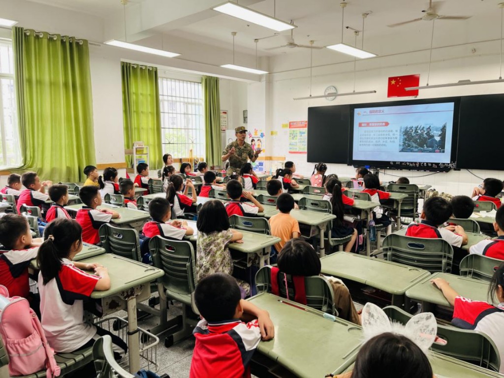 今年9月21日是第24个全民国防教育日。近日,市武装干部培训中心携手银海学校,给孩子们带来一堂别开生面的国防教育课。