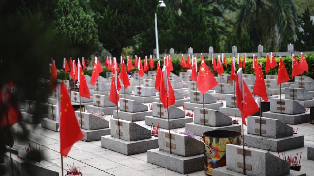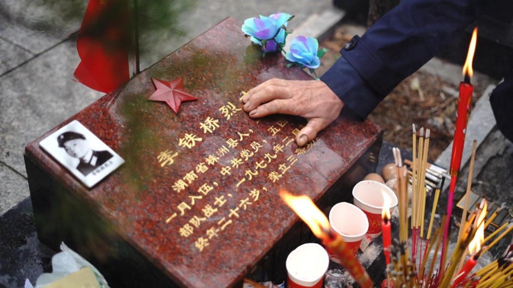 烈属擦拭墓碑,诉说对亲人的无尽思念