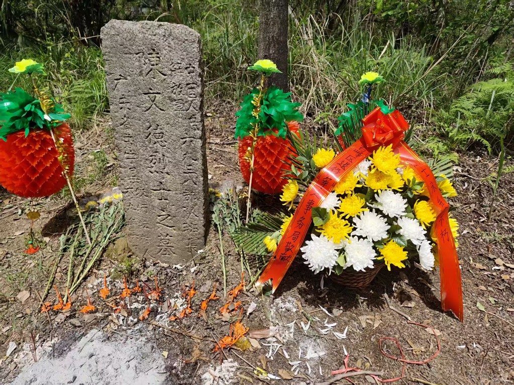 烈士陈文德,男,广东省揭阳市普宁市占陇交丙坛村人,1966年入伍,原服役于中国人民解放军6938部队,班长。1969年在一次训练中,不幸坠马因公牺牲,被评为革命烈士。安葬于部队驻地--株洲市石峰区清水塘街道一小山坡上。多年的风雨侵蚀、地域变迁,陈文德烈士墓渐渐失去了明显的标识。加上年代久远、当时交通不便,山上灌木众生,墓地难以寻觅。其亲属也始终未能知晓具体墓址。去年,热心居民龙国斌在给自己父母扫墓时,偶然发现一个烈士墓碑。石峰区退役军人事务局闻讯后,迅速通过抖音、今日头条等媒体发布烈士寻亲信息,同时,通过英烈网比对烈士名录。历经一年多的时间,最终综合各方线索确认了墓主身份,并与陈文德烈士亲属取得联系。在石峰、普宁两地退役军人事务部门的联动协作下,促成了此次千里祭扫英烈之行。