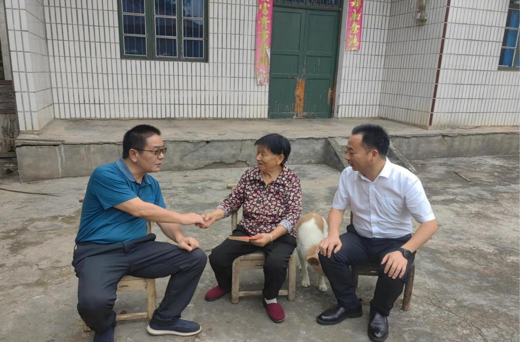 天元区人民政府党组成员、副区长黄志斌(左一)慰问三门镇湖田村烈士子女刘雨石