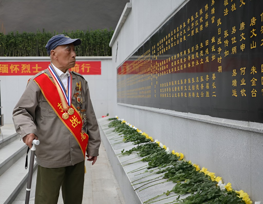 9月30日是中国第十二个烈士纪念日,株洲渌口区关王烈士陵园内,一场庄严的向烈士敬献花篮仪式正在举行。一位特殊老人的出现引人注目——他身披“抗战老兵”绶带,胸前挂满勋章,向烈士英名墙献花后默默离开,没有留下姓名。