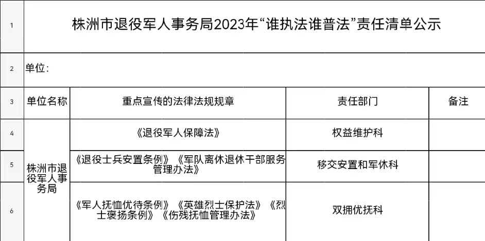 株洲市退役军人事务局2023年“谁执法谁普法”责任清单公示