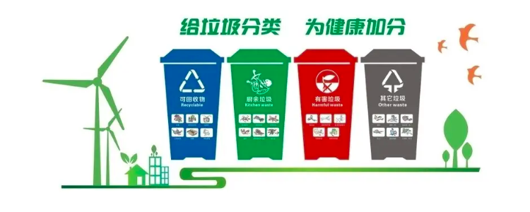 垃圾分类四大类是可回收垃圾、厨余垃圾、有害垃圾和其他垃圾。