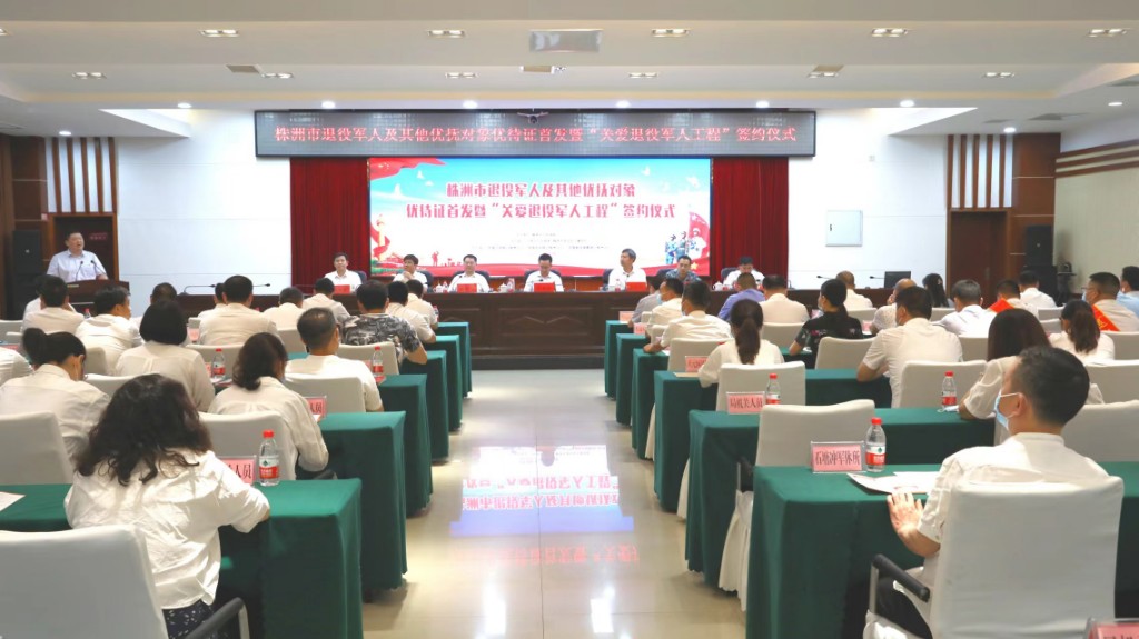 6月9日,我市退役军人及其他优抚对象优待证首发暨“关爱退役军人工程”签约仪式在芦淞区政府举行。市人民政府副市长易湘东出席仪式并讲话,市人民政府副秘书长黄升阳主持仪式,市退役军人事务局党组书记、局长刘新宇、株洲军分区政治工作处主任胡小剑、芦淞区区委副书记、区长王强、城区政府分管负责人以及全市退役军人事务系统、“关爱退役军人工程”签约单位相关负责人和退役军人代表参加活动。